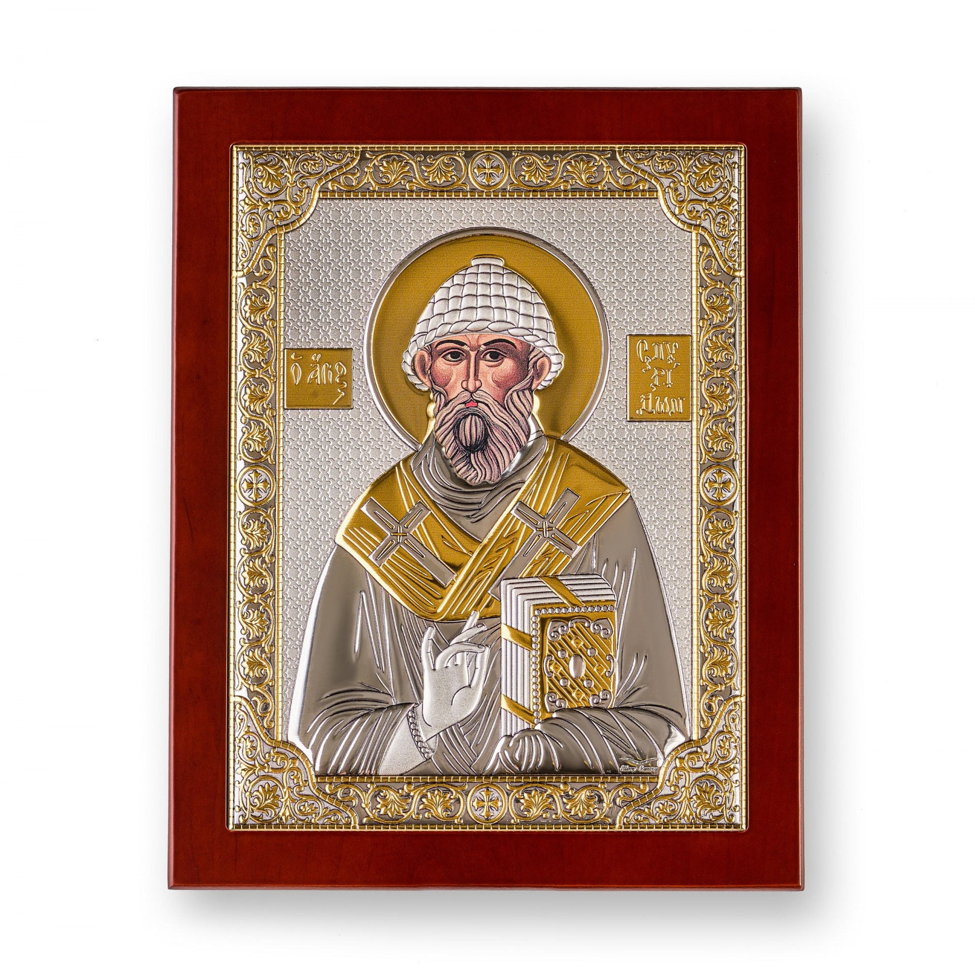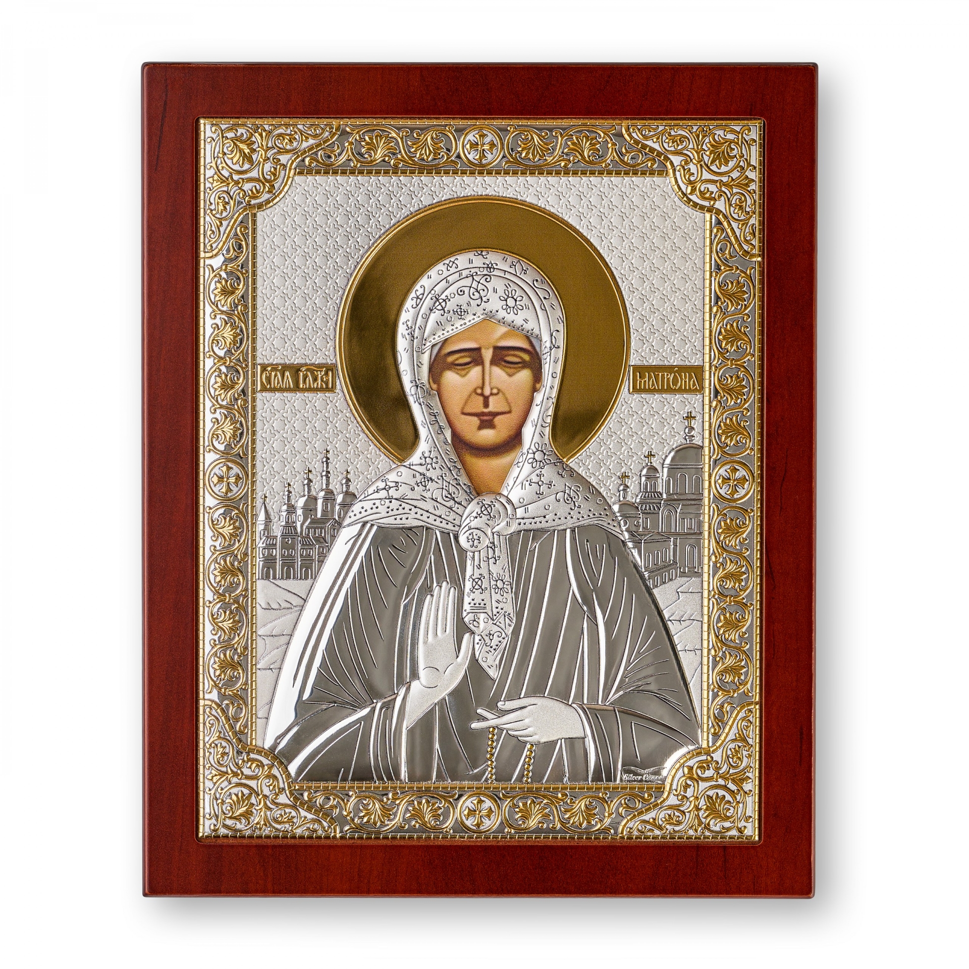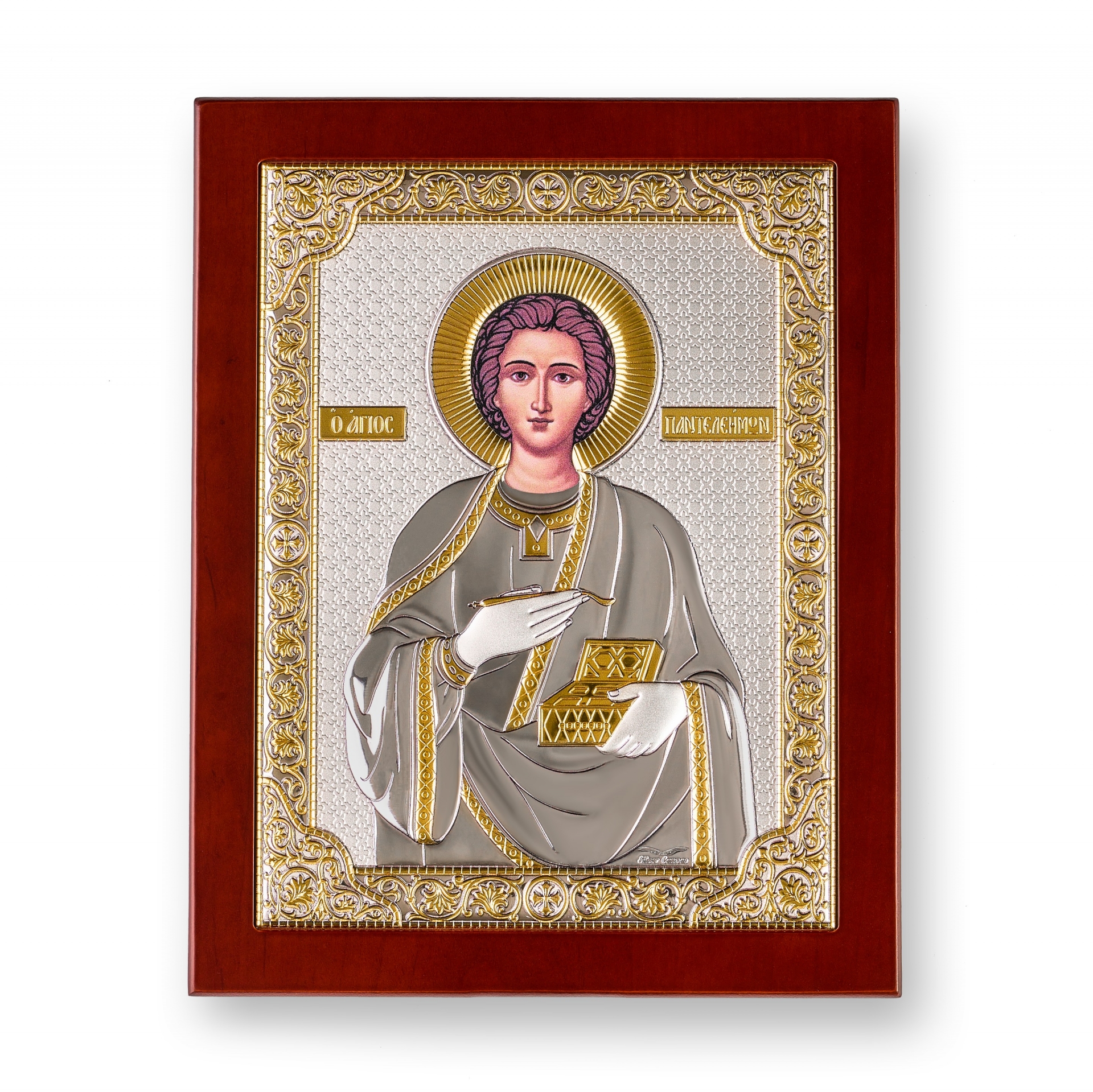Rectangular Icon. Painted face. Wooden frame. Silver 999. Gold.