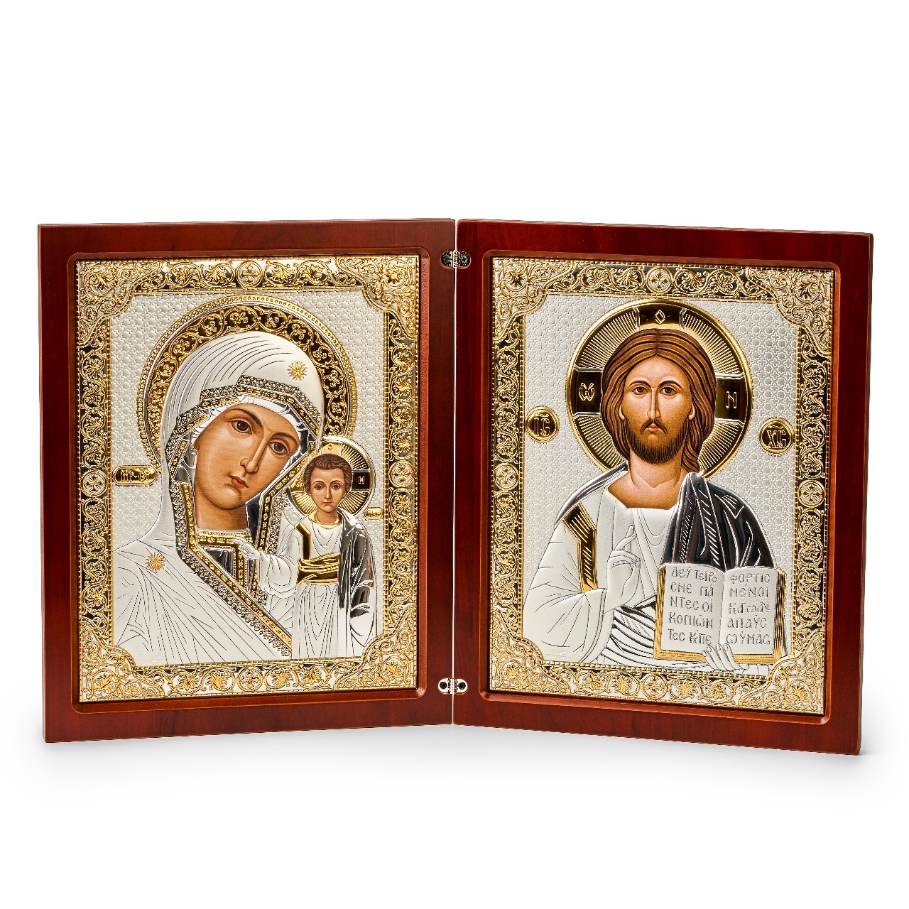 Rectangular Icon. Painted face. No frame. Silver 999. Gold. Coloured.