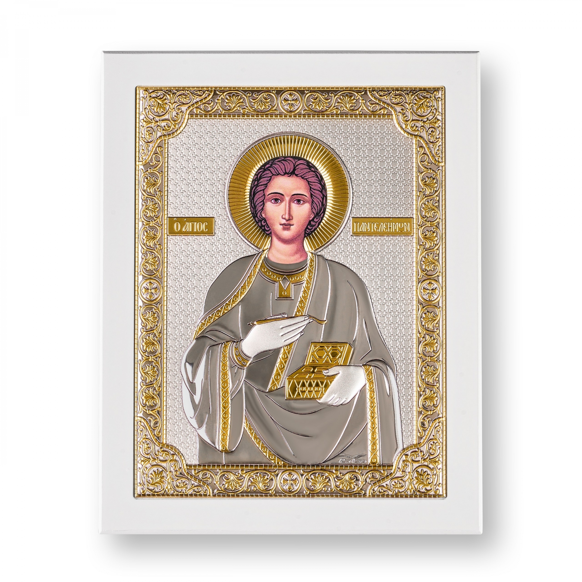 Rectangular Icon. Painted face. White base. Silver 999. Gold.
