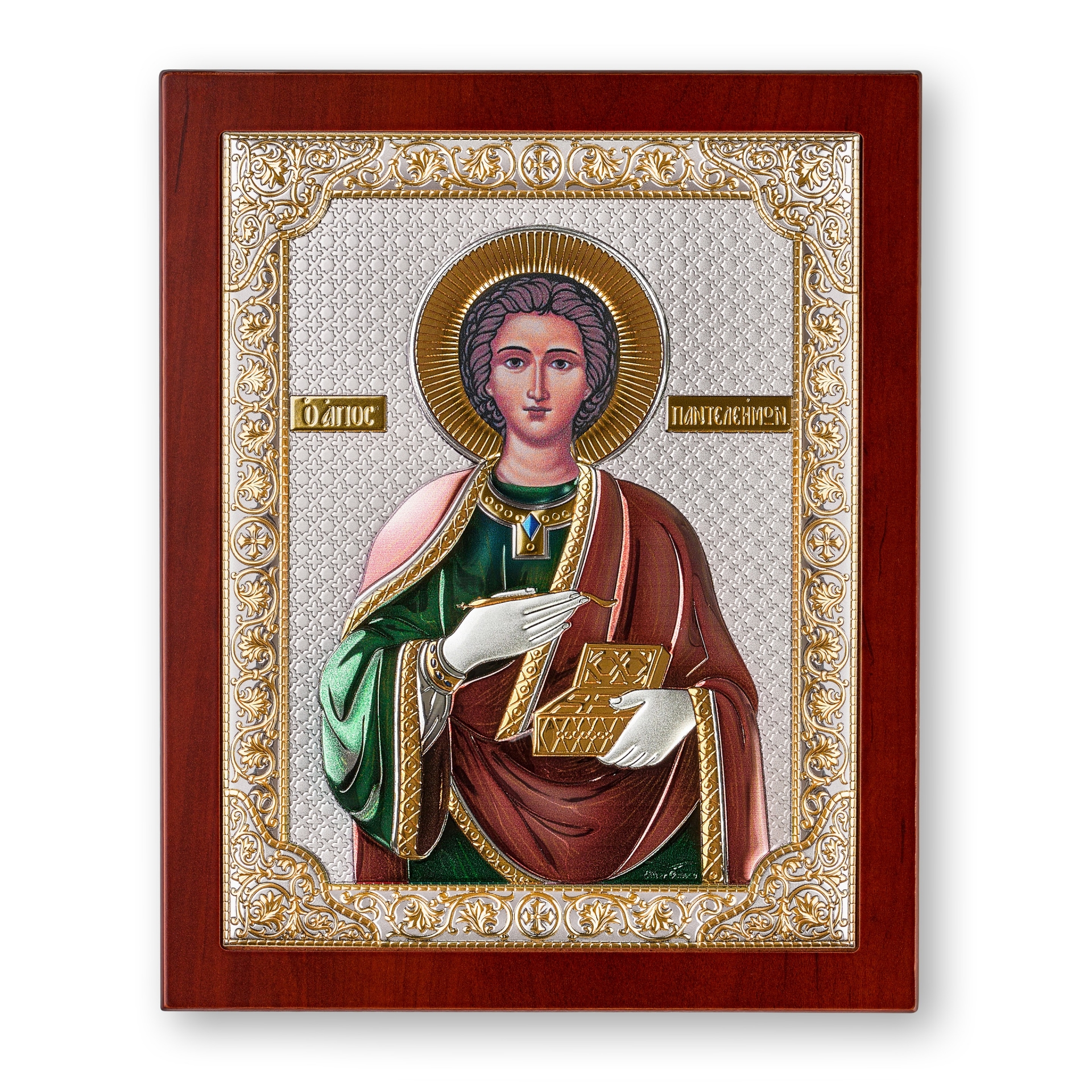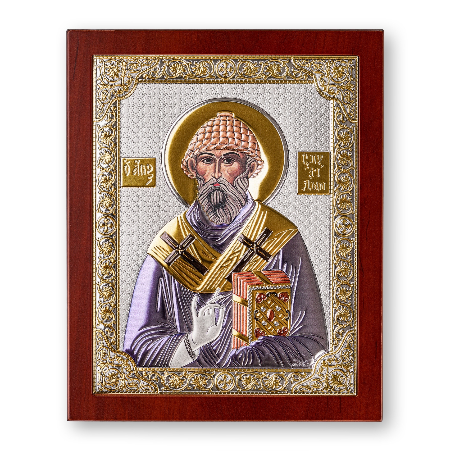 Rectangular Icon. Painted face. Brown base. Silver 999. Gold. Coloured.