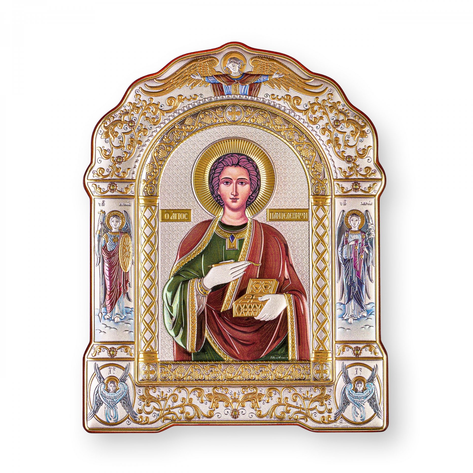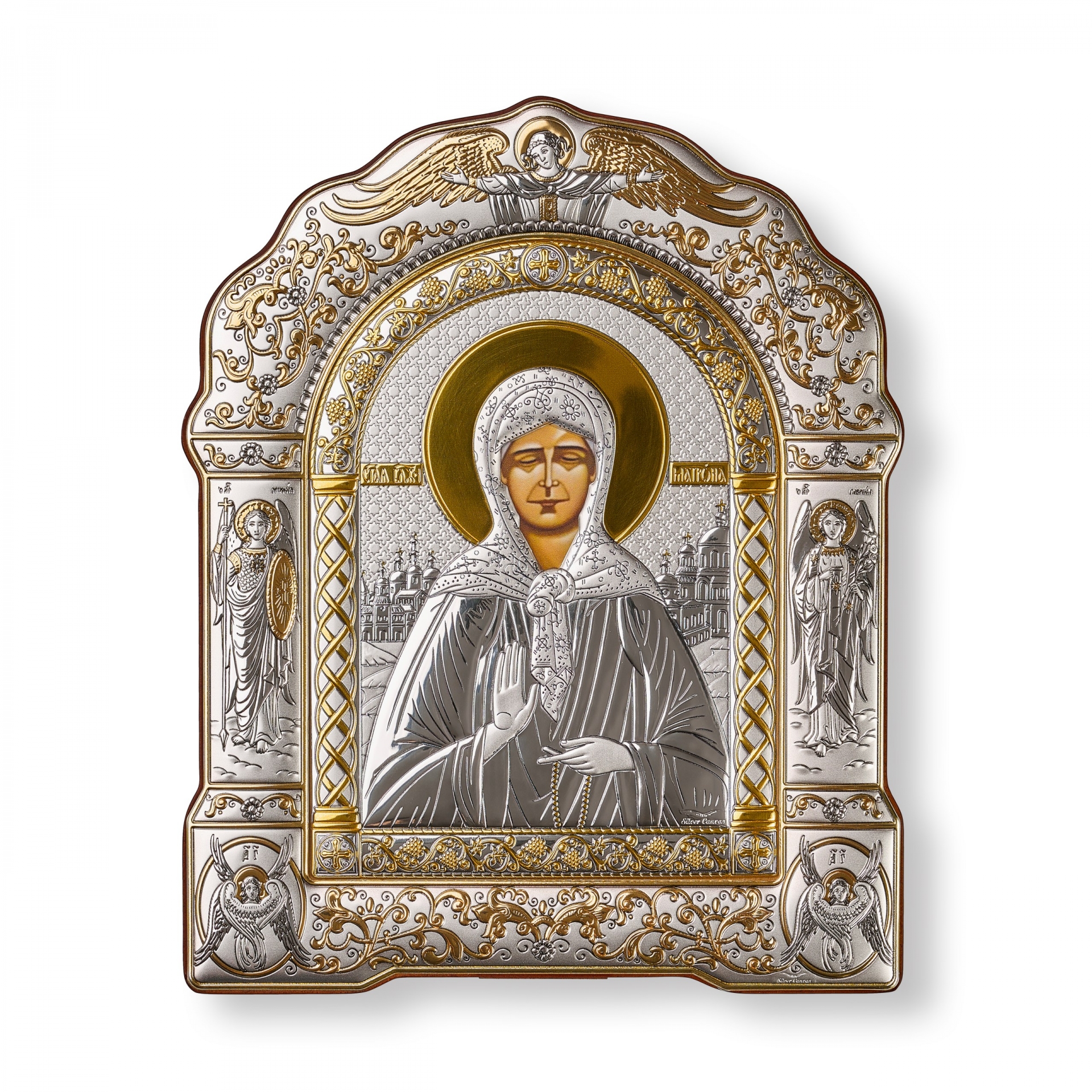 Икона арочной формы с рамкой под стеклом; Лик прописанный; Серебро 999° позолота