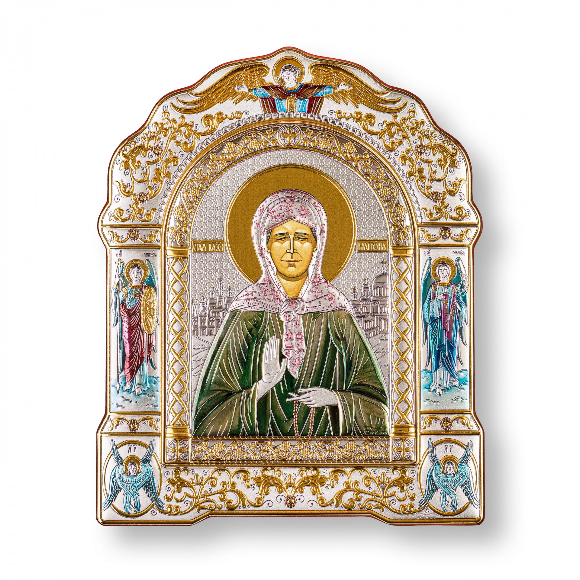 Икона арочной формы с рамкой под стеклом; Лик прописанный; Серебро 999° позолота эмаль